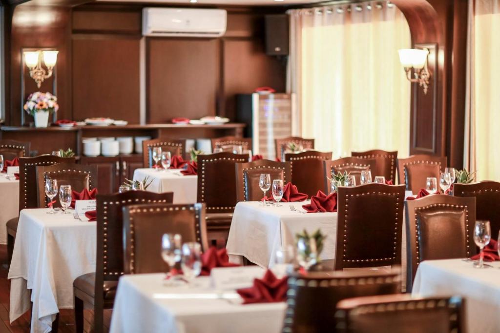 Du khách sẽ được thưởng thức ẩm thực hải sản tươi sống, tham gia các hoạt động khám phá vịnh như kayak, bơi lội, tham quan Hang Sáng & Tối, Trà Bầu / Ba Trai Đào, cũng như trải nghiệm lớp học nấu ăn Việt Nam và Thái Cực Quyền trên boong tàu.
