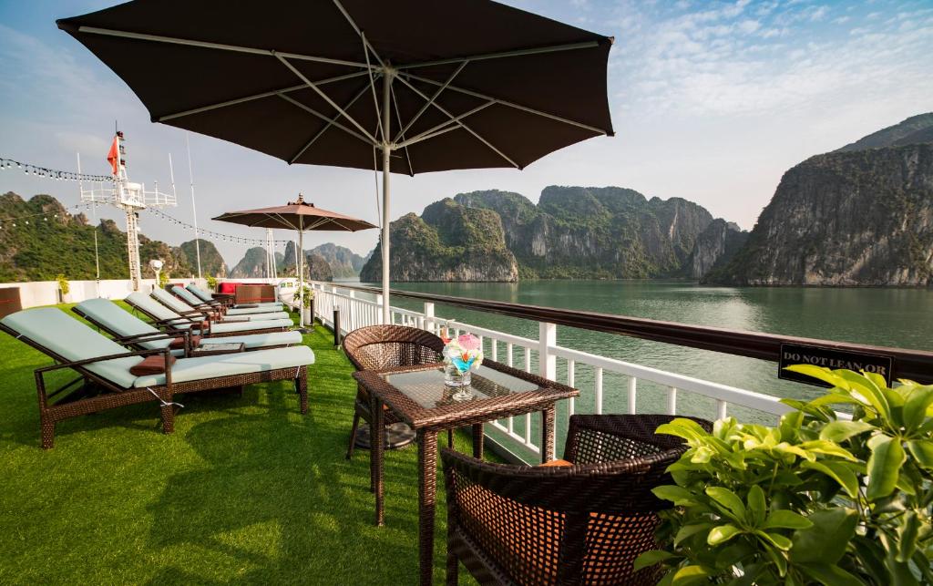 Trong suốt hành trình, du khách sẽ được chiêm ngưỡng hàng trăm đảo đá vôi hùng vĩ, chèo kayak qua những hang động tuyệt đẹp, tham gia tiệc hoàng hôn trên boong tàu và thưởng thức ẩm thực hải sản tươi ngon giữa khung cảnh thiên nhiên thơ mộng của vịnh.